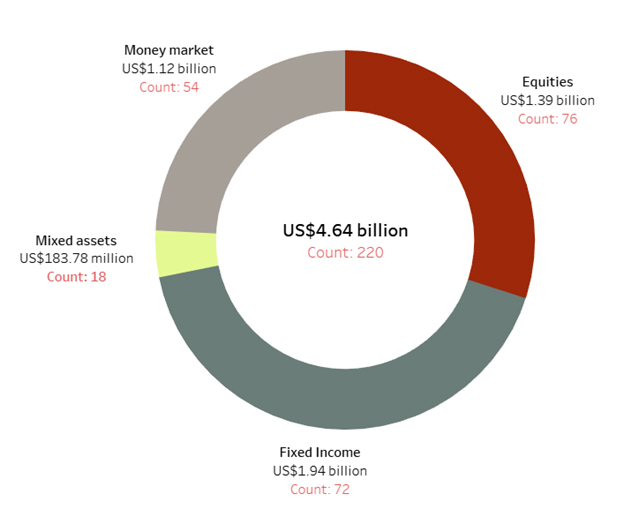 Money market instruments account for the third largest Shariah asset class, with US$1.12 billion in AuM divided over 54 funds, according to the same database. Mixed assets represent the smallest component, with US$183.78 split across 18 funds.