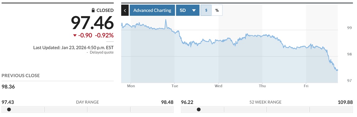 Source: MarketWatch, pricing as at the 23rd January 2026