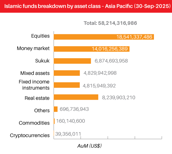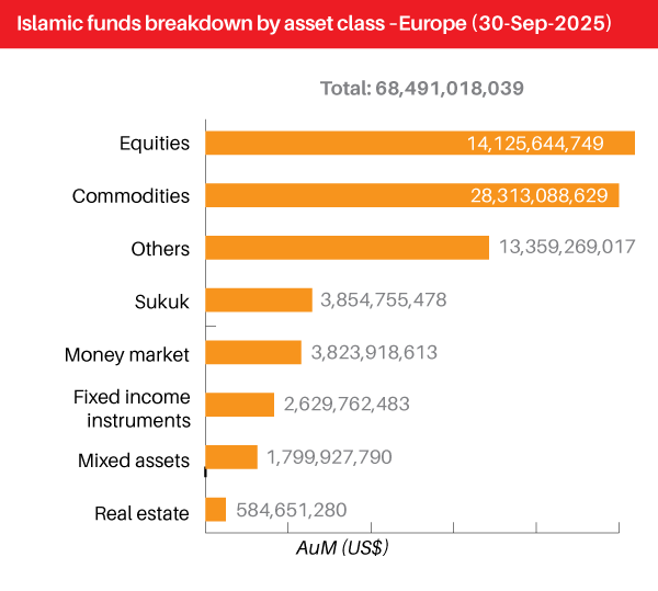 The global Islamic funds market, excluding Iran, recorded an expansion over the past year, with total AuM rising 25.87% to US$383.62 billion in Q3 2025. Across all regions, the global market now comprises 2,074 Islamic funds managed by 343 asset management firms, supported by 119 new fund launches between October 2024 and September 2025. The combined figures reflect broad-based growth in Shariah compliant investments worldwide, underpinned by rising product issuance, expanding investor participation and continued diversification across asset classes and domiciles.