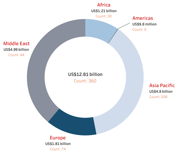 The Middle East, with only 44 funds, ranks highest in sectoral AuM though its advantage over the Asia Pacific region is only marginal, at US$4.99 billion or 39% of total market share.