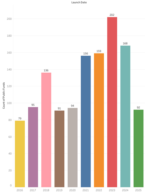 With the impact fading from the confluence of these three major factors, 2025 saw the number of new fund launches stabilizing again.