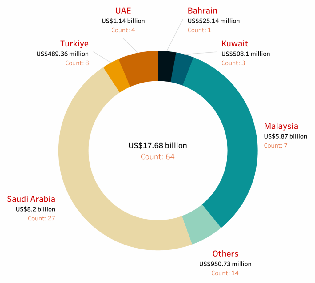 Country-wise, Saudi Arabia leads with US$8.2 billion in assets across 27 funds. Malaysia is second with US$5.87 billion and seven funds, followed by the UAE with US$1.14 billion and four funds.