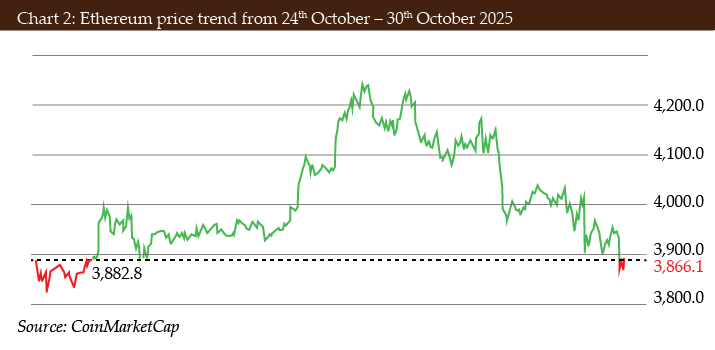 Chart 2: Ethereum price trend from 24th October – 30th October 2025