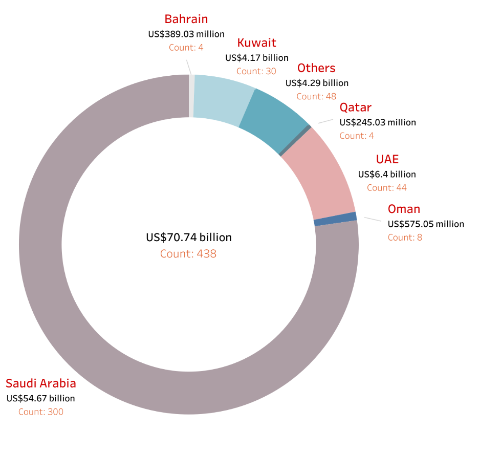 Saudi Arabia dominates this extended market, with 300 funds worth US$54.67 billion. The UAE ranks second in the region, outpacing Kuwait (US$4.17 billion, 30 funds), Oman (US$575.05 million, eight funds), Bahrain (US$389.03 million, four funds) and Qatar (US$245.03 million, four funds).